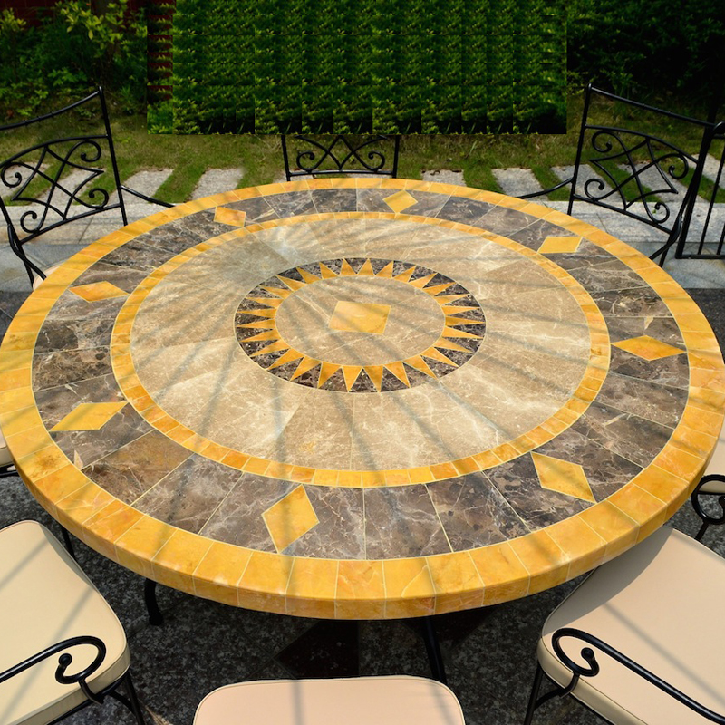 A small marble mosaic table top can be a nice decorative piece to add to your home. This could be a coffee table, side table, cafe table or even your dining room table.