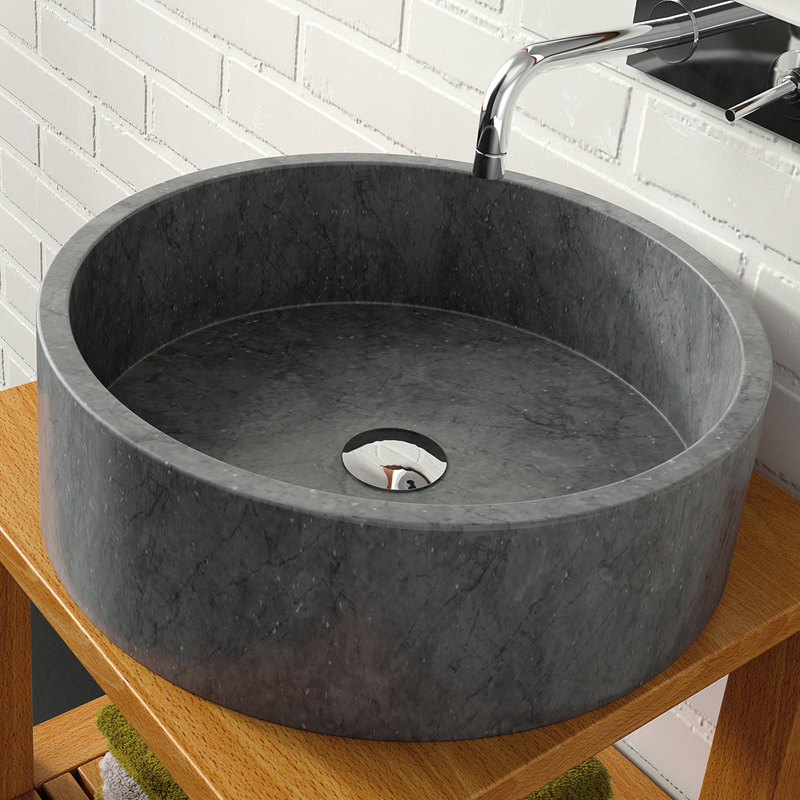 The Aquilla Dark Gray River Stone Vessel Sink has a gorgeous interior that features freckled accents. A slightly rugged exterior highlights this item's unique silhouette.