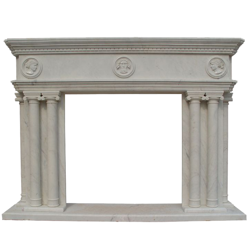 This statue fireplace is made beige marble. Beautiful botanical artistry is hand carved throughout the surface of this spectacular fireplace design. This fireplace surround can be customized in personal size dimensions to fit your decorating needs.