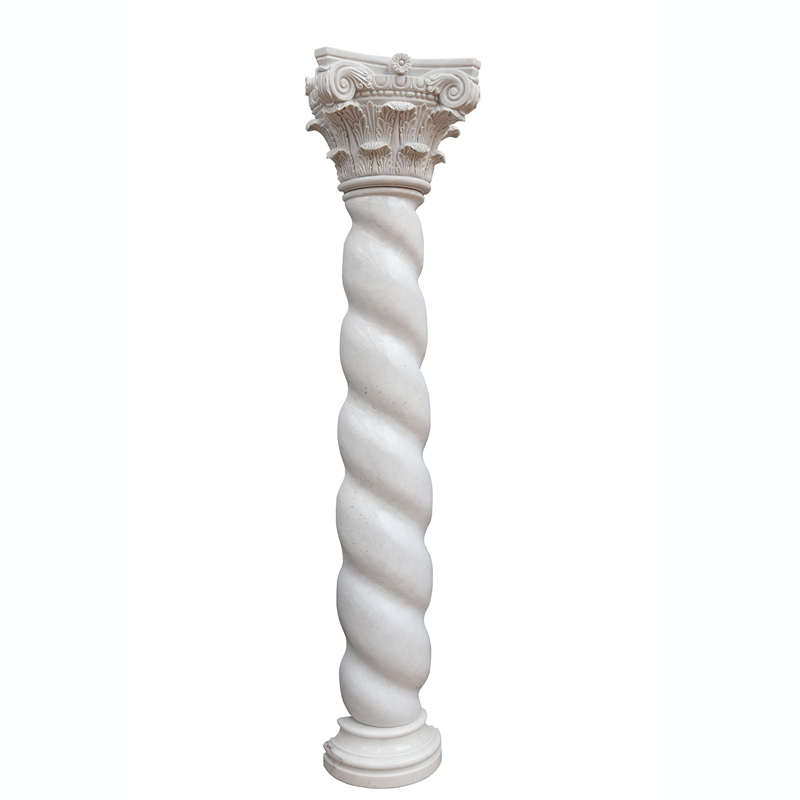 Rome round column with spired shaft. This beige marble column has been custom designed and incorporated into a high end custom home application. We can create this at any size and we offer volume pricing on homes that require large quantity.