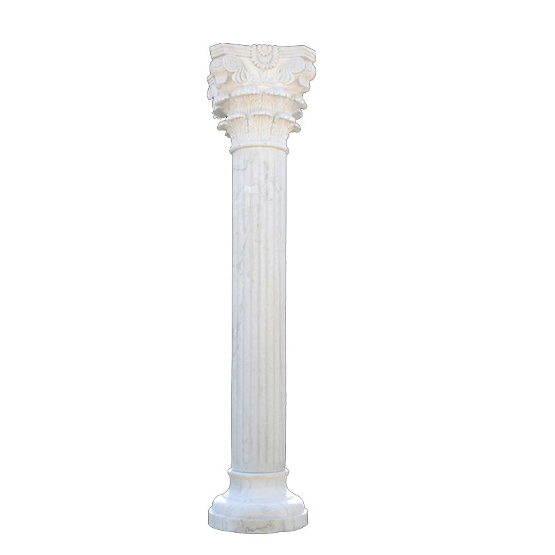 Enhance the beauty of your architectural project with this white marble column. It is sculpted from fine marble in natural tones of light grey with a simple design. It's a solid column, only 3pieces in total, captial, shaft and based. The design can be according to your drawings.
