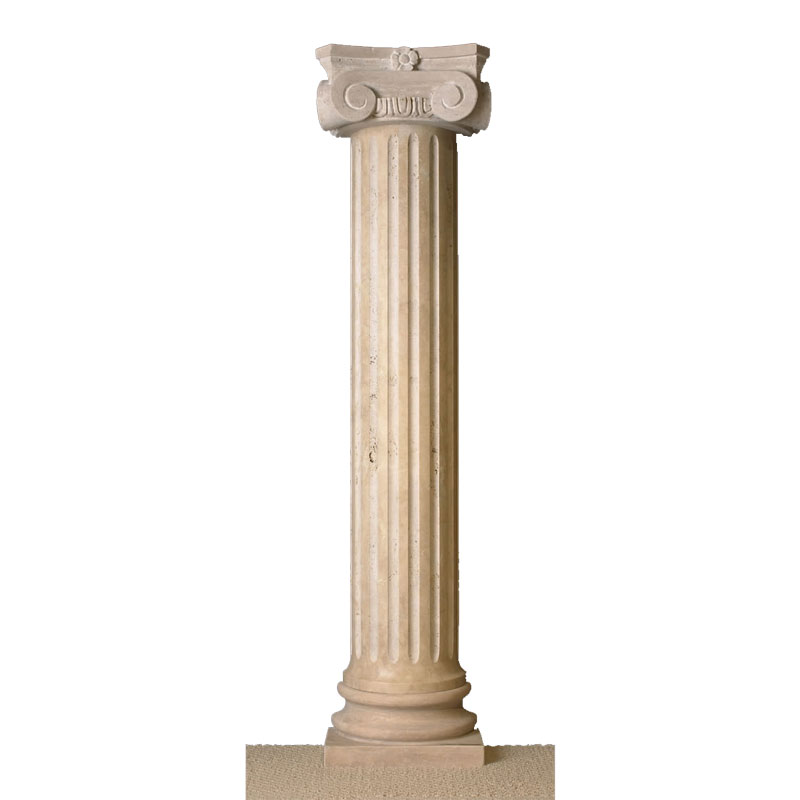 This beige travertine column has been custom designed and incorporated into a high end custom home application. Simple design with fluted shaft, square base and Greek capital. We can create this at any size and we offer volume pricing on homes that require large quantity.