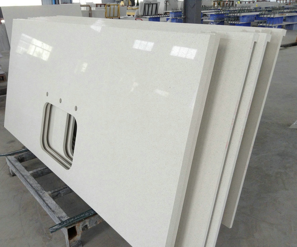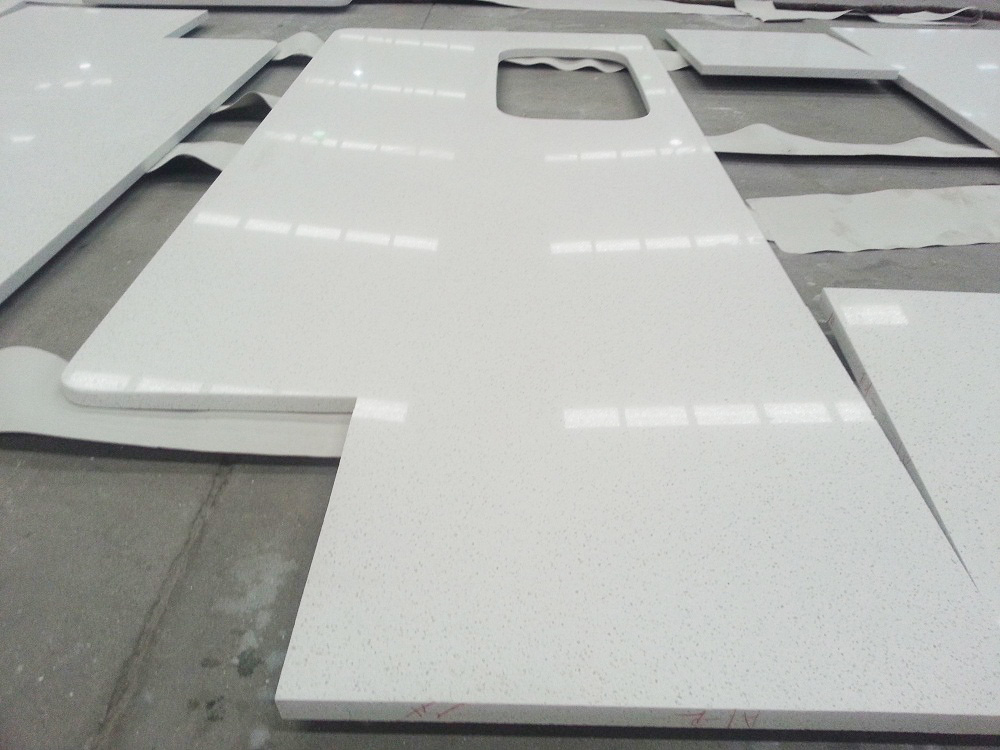 Stellar Snow Quartz Island Tops can be shine bright and give you space a beautiful foundation. Juust look at how stuning this space is with or without the trendy addions. Newstar Stone an experienced quartz manufacturers offers a wide selection of quartz slab countertops and is fully licensed and certified.