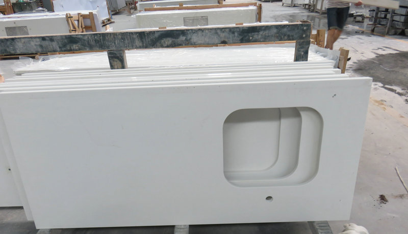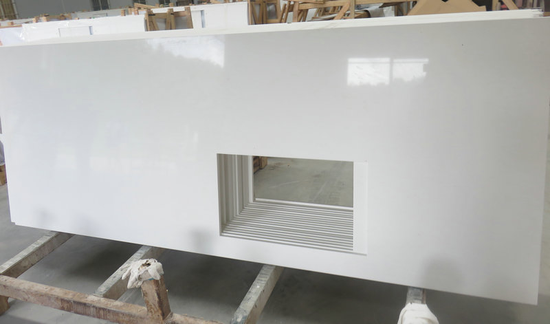 Pure White Quartz Kitchen Countertop remains growing trends while mitered corners are also often requested for white quartz kitchen worktops which is better to work with mitered edges. It is available in slabs with a polished finish and is recommended for interior projects including walls backsplashes countertops and flooring.
