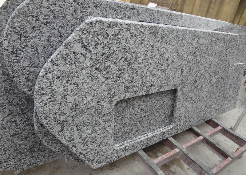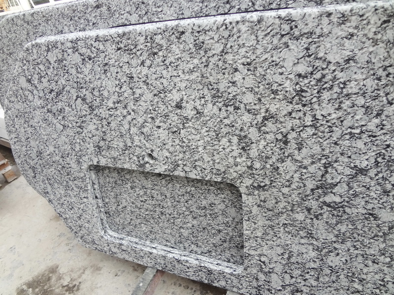 Apray White Granite Vanity Top has a unique granite structure which is very consistent between the different slabs. White granite vanity top this particular stone is widely used not only for bathroom vanitys but also kitchen countertop.