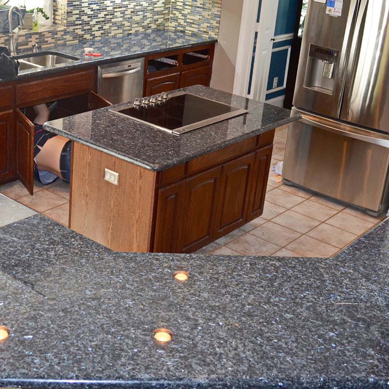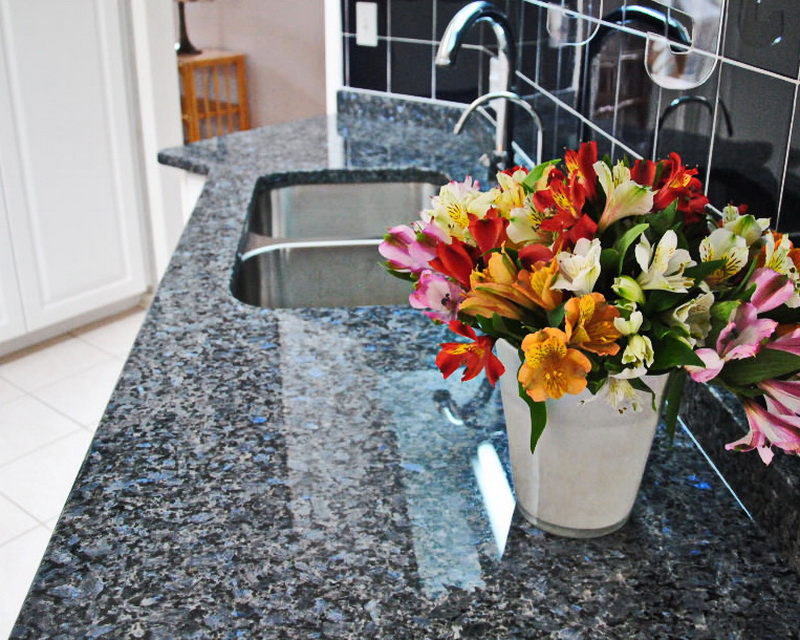 Blue Pearl Granite Countertop gives rich looking to the kitchen when it is used with dark cabinet color. The specks of this best quality granite has just like a gem and it is all shining when you look from the different angles of the kitchen granite countertops. Additionally, Blue Pearl granite comes three different color tones.