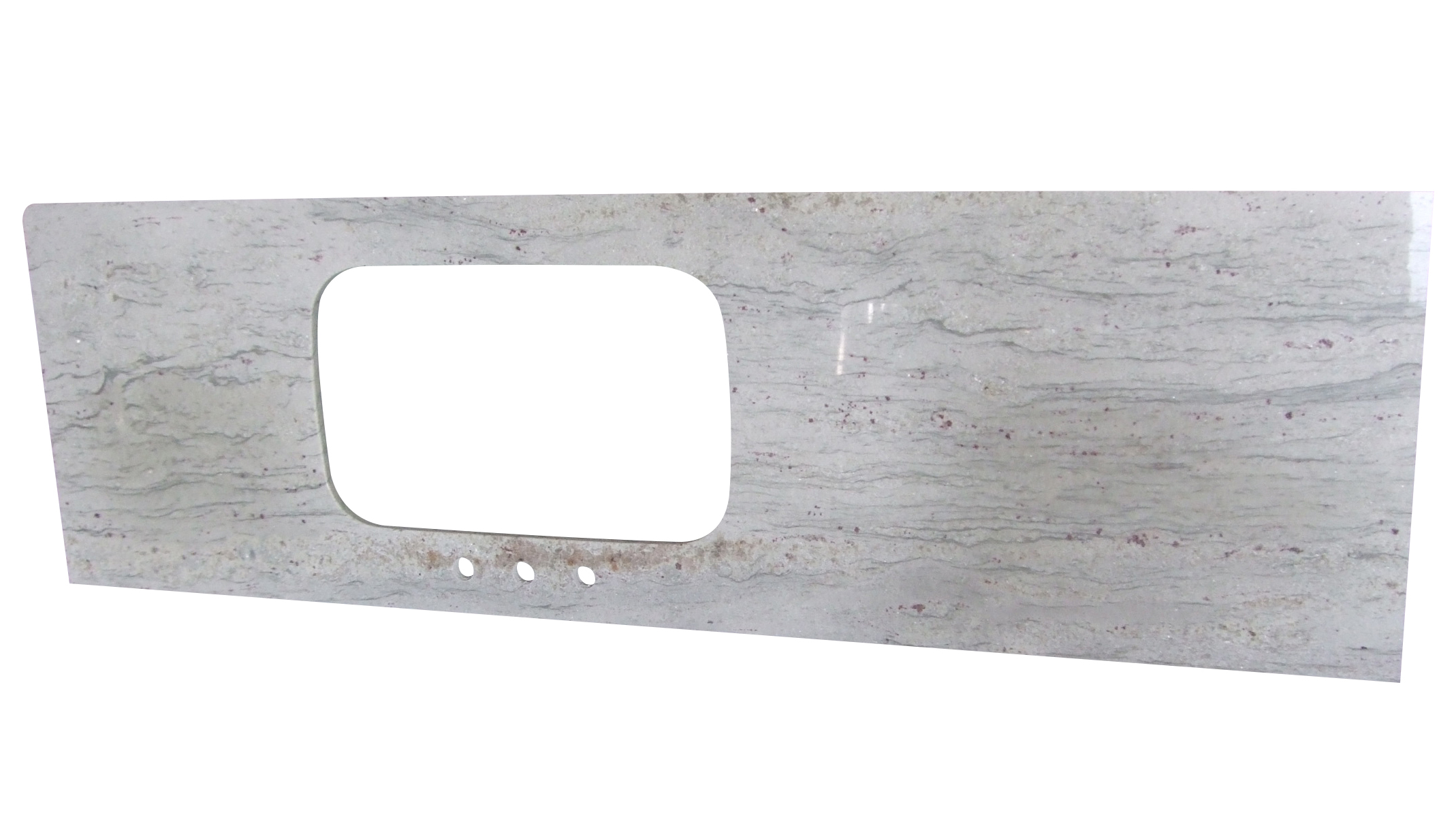 River White Granite Countertop are perfectly in keeping with the light, contemporary theme of the design. The brown flecks give the white granite countertop a gently nod to the walnut accents in the room such as the handles and curved breakfast bar. White kitchens with granite creat amazing combination for the remodeling.