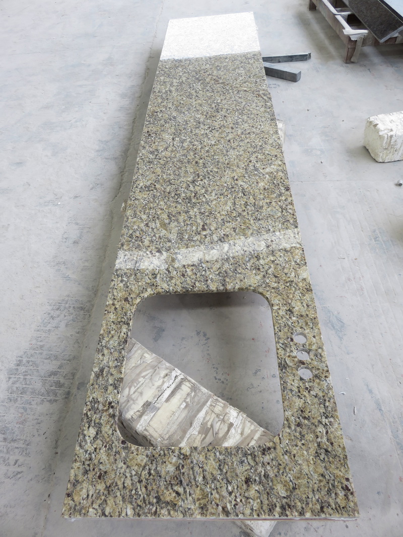 Santa Cecilia Granite Vanity Top is known for its beauty and friendly feature. It is the best selling granite bathroom vanity top in the United States. Santa Cecilia bathroom vanity granite top is a good choice for soft tone lovers in a bathroom.