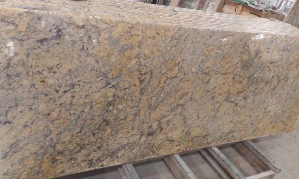 Sunny Flower Granite Countertop is a spectacular stone. It has a lovely characteristic colors and swirling patterns. As a name suggested it is a predominantly golden color stone for kitchen granite worktps. This yellow gold kitchen worktop granite creates a feeling such as warmth and richness in the kitchen.