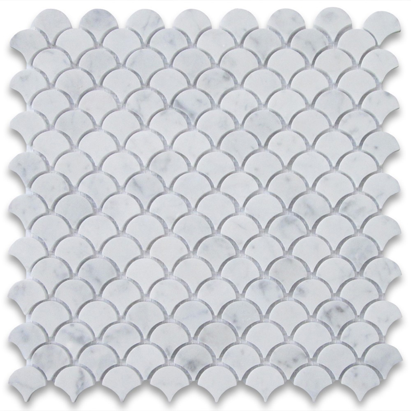 Bianco carrara fan shaped marble mosaic tile, hand crafted grey and white honed marble mosaics are perfect for both residential and commercial. Made in china