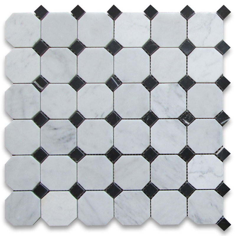 Carrarawhite marble mosaic tile, beautifull marble mosaic from china, the port:xiamen or other china ports. Design:the shape could be hexagon, square, round, irregular, rhombus, strip, etc or as customized