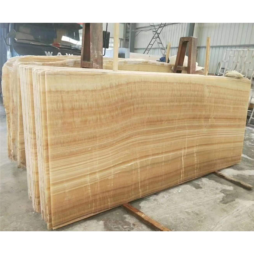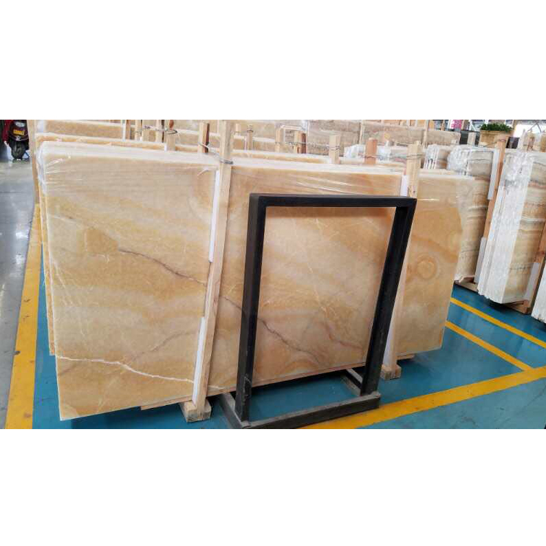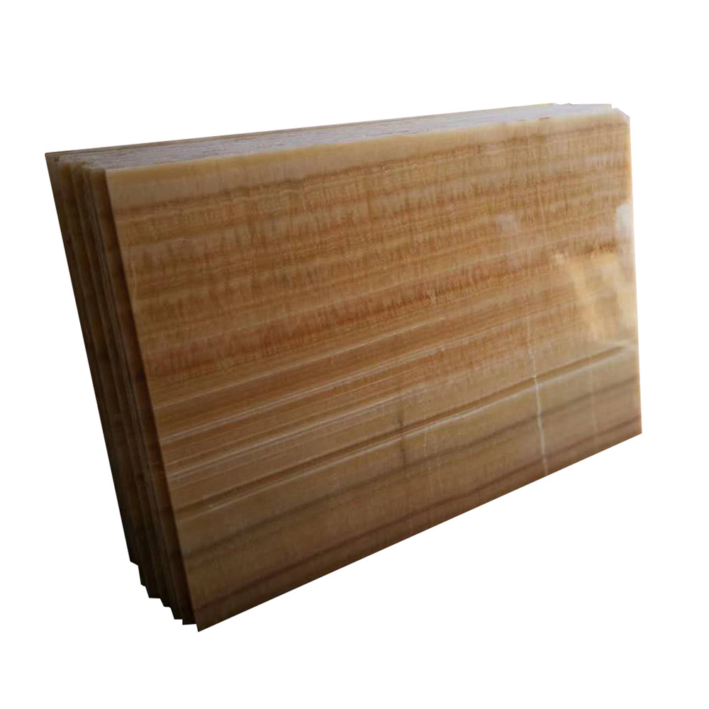 Resin Yellow is a kind of yellow onyx from China. The material is widely used for tiles table tops bathroom vanity tops and other decorative items for its exclusive and exquisite color. Finish in polished honed brushed are all available. Tiles and slabs can be done. Tile size 305*305*10mm 406*406*12mm 457*457*12mm.