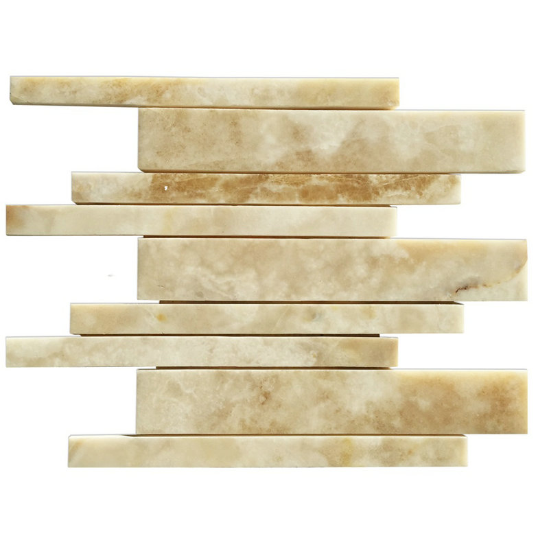 Caramel Onyx Linear Pattern Mosaic Polished Tiles for Home Decor. The Mosaic is Suitable in Kitchen and Bathroom Backsplash, Floor and Wall Decor Tiles.