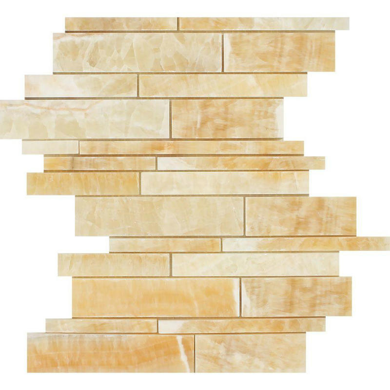 Honey Onyx Polished Random Strip Mosaic Tile Yellow for Home Decor, Kitchen and Bathroom Backsplash in Commercial and Residences Spaces