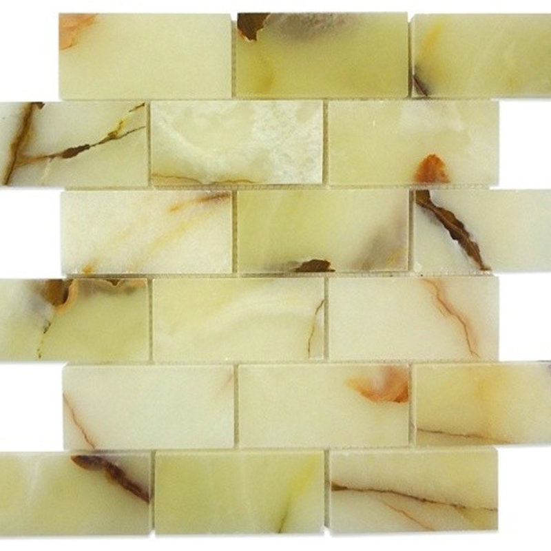 Light Green Onyx 2 x 4 Polished Mesh-Mounted Mosaic Tiles is suitable for Floor and Wall Tiles, Kitchen and Bathroom Backsplash Decor in Home Designs