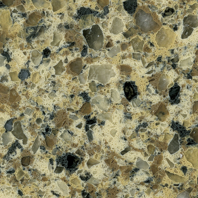 Quartz Table Top in Autumn Romanza, made from multi color quartz, is very durable and visually attactive.