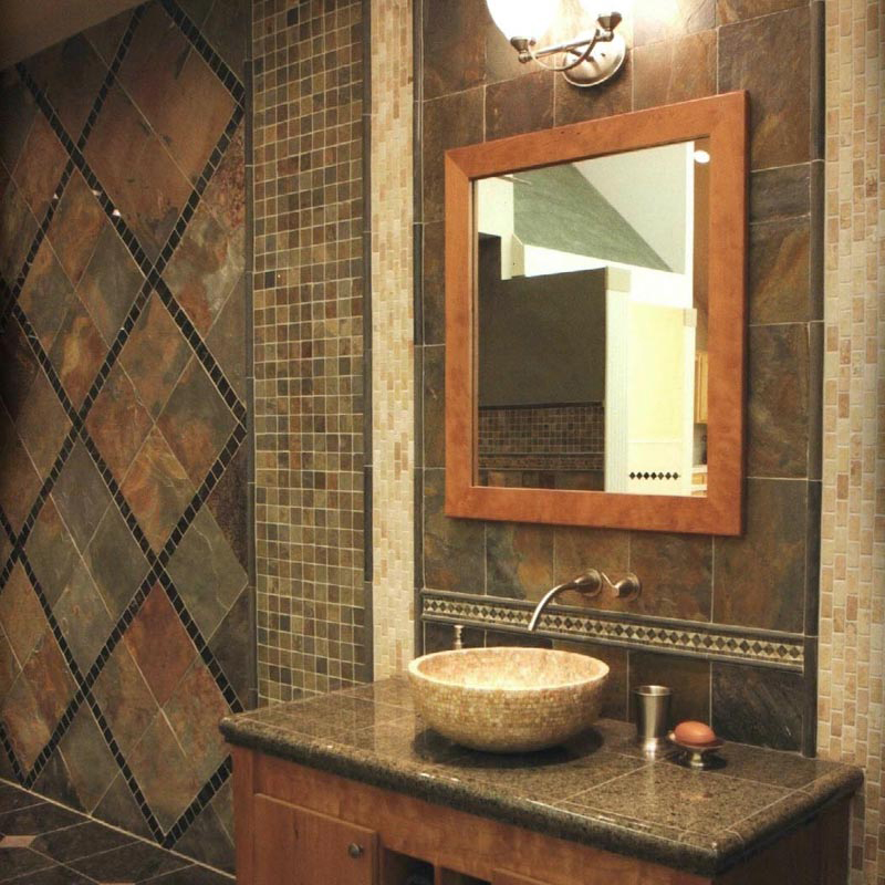 Rustly slate is rich multicolored tiles available in over 20 compositions and sizes for interior and exterior design projects. These slate tiles are recommended in areas without freezing temperatures for outdoor use, and all interior use including walls, showers, flooring, and other design features