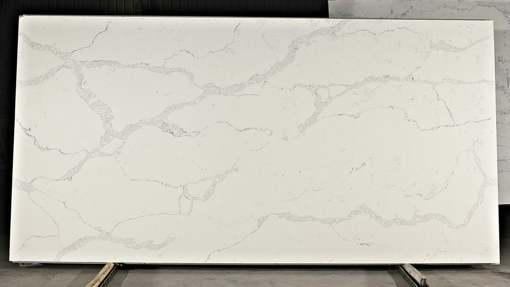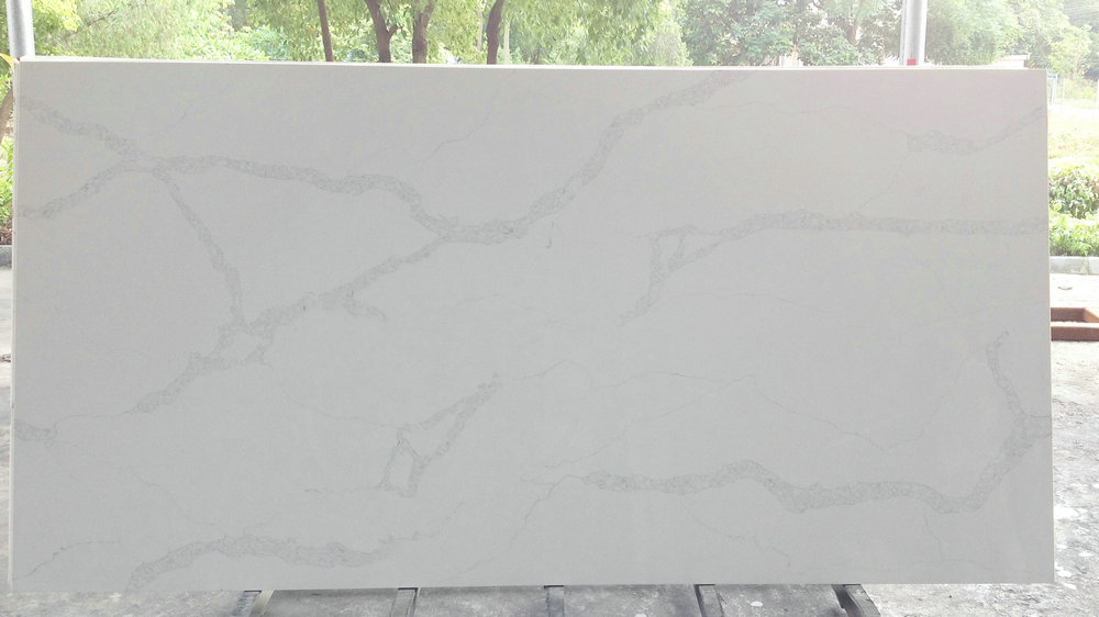 Benyeequartz NQ5063 Calacatta Nuvo white artificial quartz stone colors kitchen countertops price for american hospitality and multi family project.