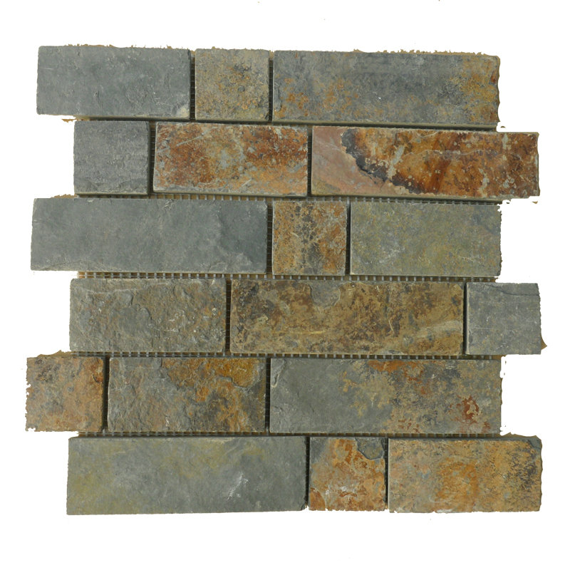 China Natural slate stone meshed mosaic tiles 305*305*20mm slate mosaic tile is Rusty slate tiles are pop to decoration floor, wall of indoor & outdoor.Black Rusty Slate Stone Mosaic on Mesh,China Rust Slate Flagstone Mesh,Multi-Color Slate Random/Irregular Flagstone for Garden Road