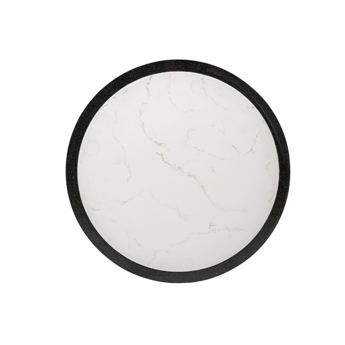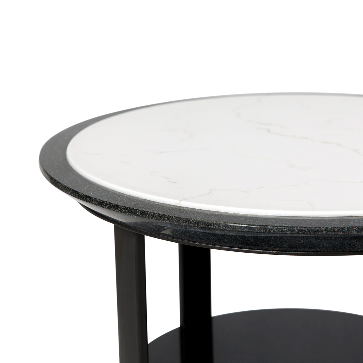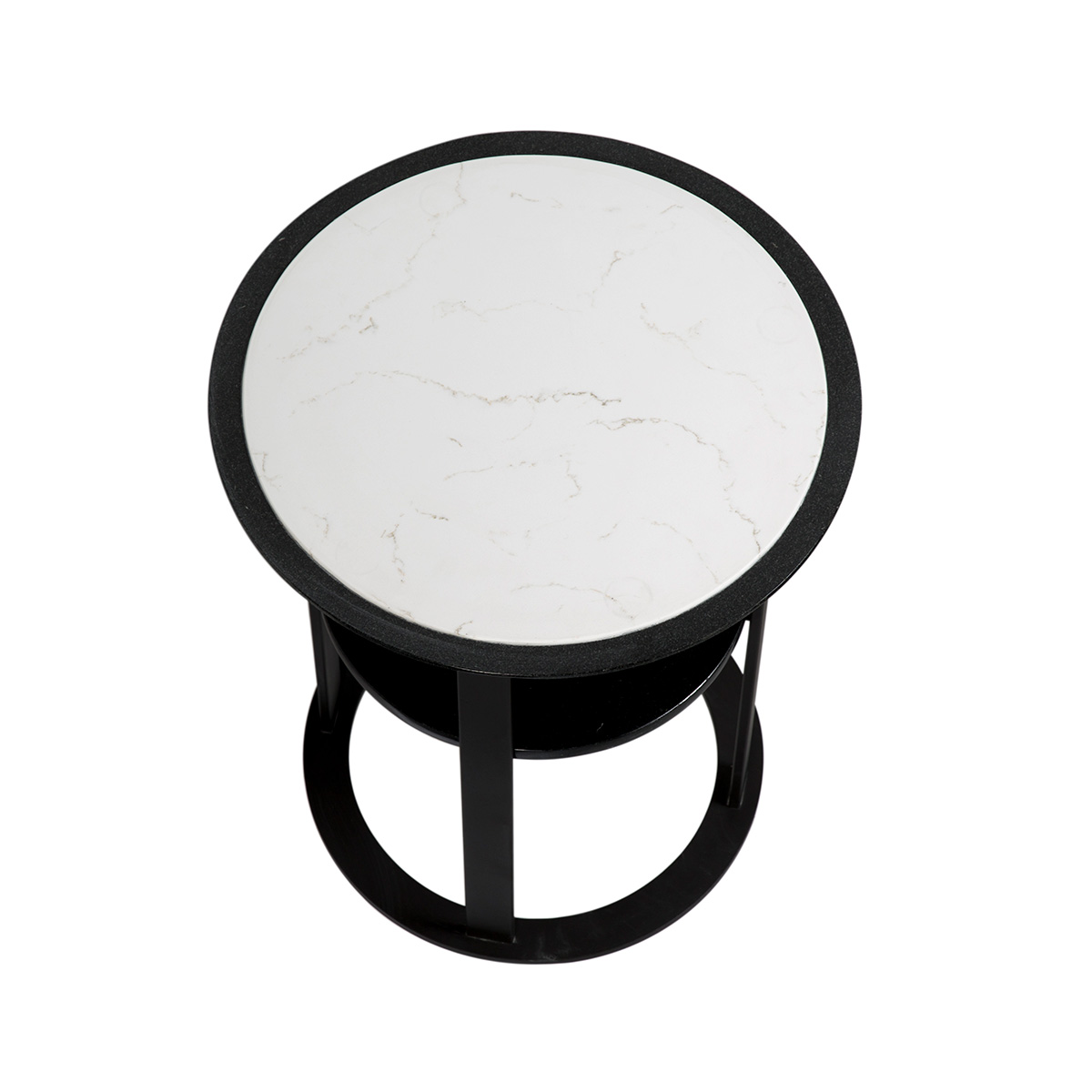 Using Forsty Carrina quartz with China black granite border as table top, will bring your room surfaces more durability and beauty.
