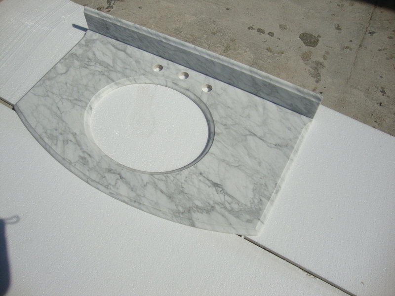 Bianco Carrara Marble Vanity Top is smooth and lightly polished for a classic look. Carrara a timeless marble lends grace and strength to both our contemporary and transitional vanity bases and exquisite sinks. Carrara Marble countertops are the main choice from the white marble countertops series carrara well used for bathroom vanity top and kitchen countertop.
