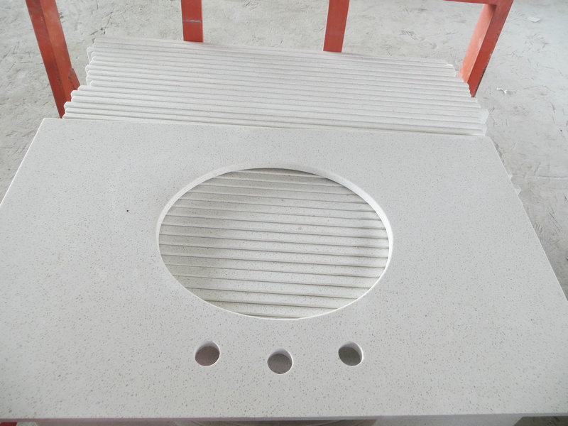 Blizzard Quartz Vanity Top works very well with white cabinets and give the freshness in the room.This bathroom quartz colors are challenging to achieve and we are especially thrilled with the combination of dark cabinets. If you are thinking to put Blizzard quartz engineered stone countertops for your bathroom you must love the clean white look that you will be getting.
