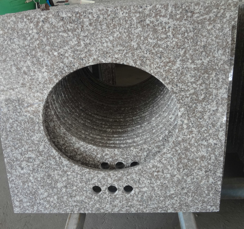 Luna Pearl Granite Vanity Top vies you a glimpse of things to come.Modern bathroom vanities and white cabinets plus white subway tile backsplash achieved the prefect balance. The reason is that glossy rich looking face and low price point cost.