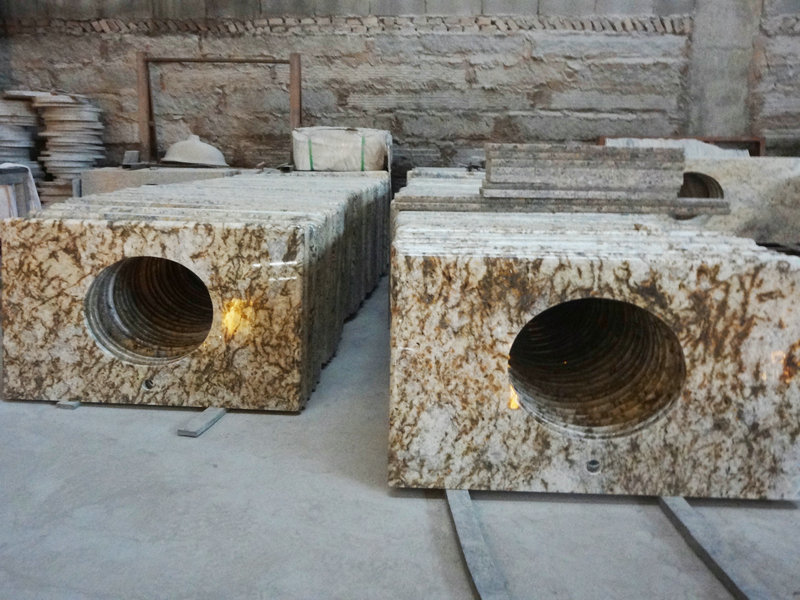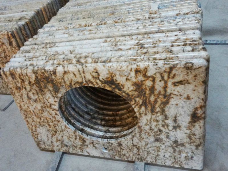 Empress Cecilia Granite Vanity Top is a durable granite with cream background and darker veins of chocolates and grays. In general the cultured granite vanity tops have enough dark color veins to create accent of contrast. This vanity with granite countertop is predominantly a creamy gold color with dark brown veins on it.