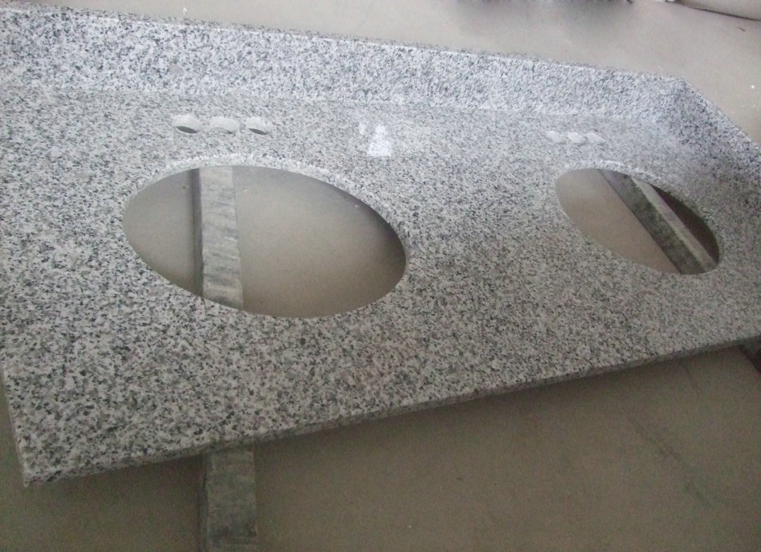 Luna Pearl Granite Vanity Top vies you a glimpse of things to come. Luna Pearl granite bathroom vanity countertops and white cabinets plus white subway tile backsplash achieved the prefect balance. The reason is that glossy rich looking face and low price point cost.