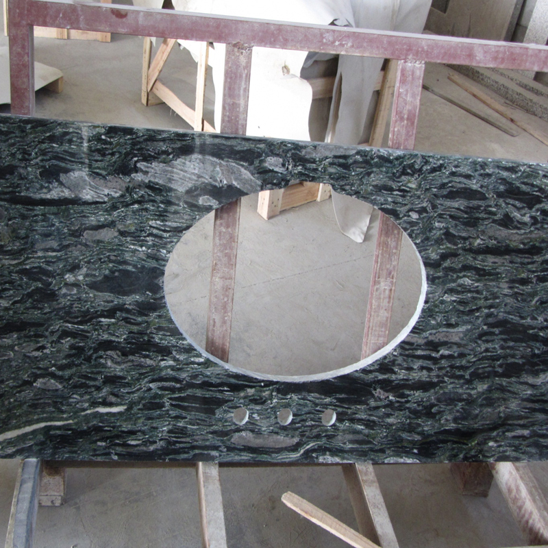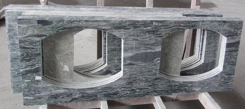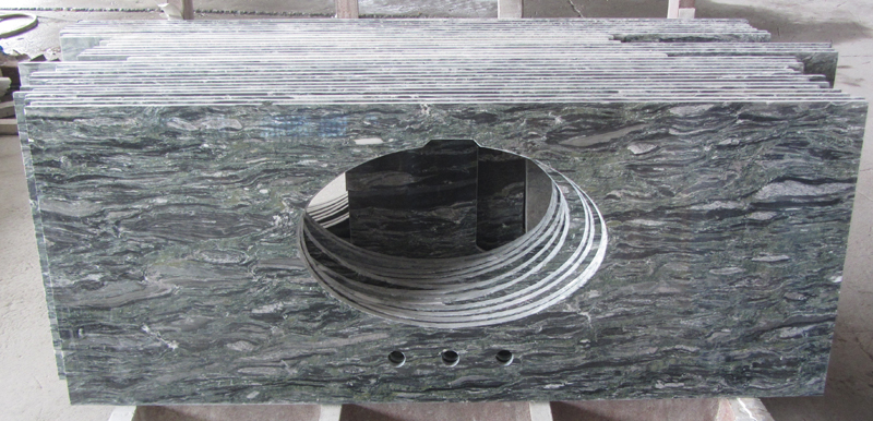 Multicolor Green Granite Vanity Top is the most abundant color on earth.This color for granite vanity top is a predominatly dark green stone that invades the beyond the imaginations. Size 31 x 19 granite vanity top works well with white cabinets.