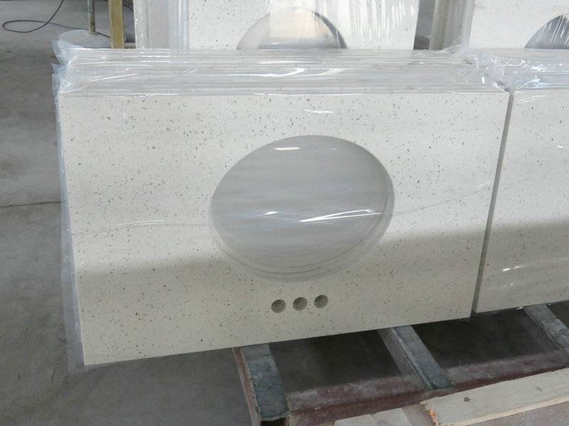 Pearl White Quartz Vanity Top gives very warm look for the bathroom usage. Mix of nice earth colors give a flexibility to choose backsplash and flooring materials while designing. This quartz for bathroom countertops has a warmer tone colors. You can mix up and will look very nice with stainless appliances and cherry cabinets with quartz countertops for bathrooms.