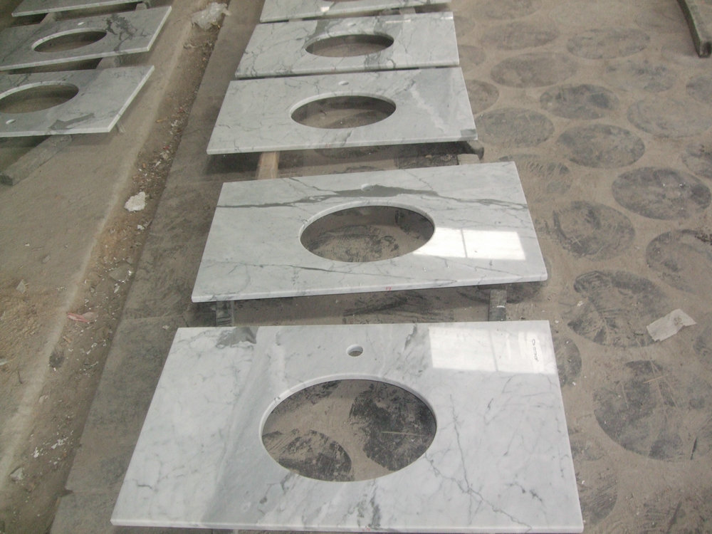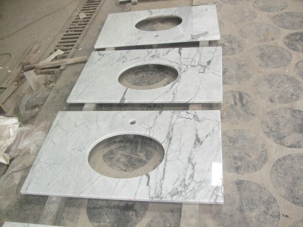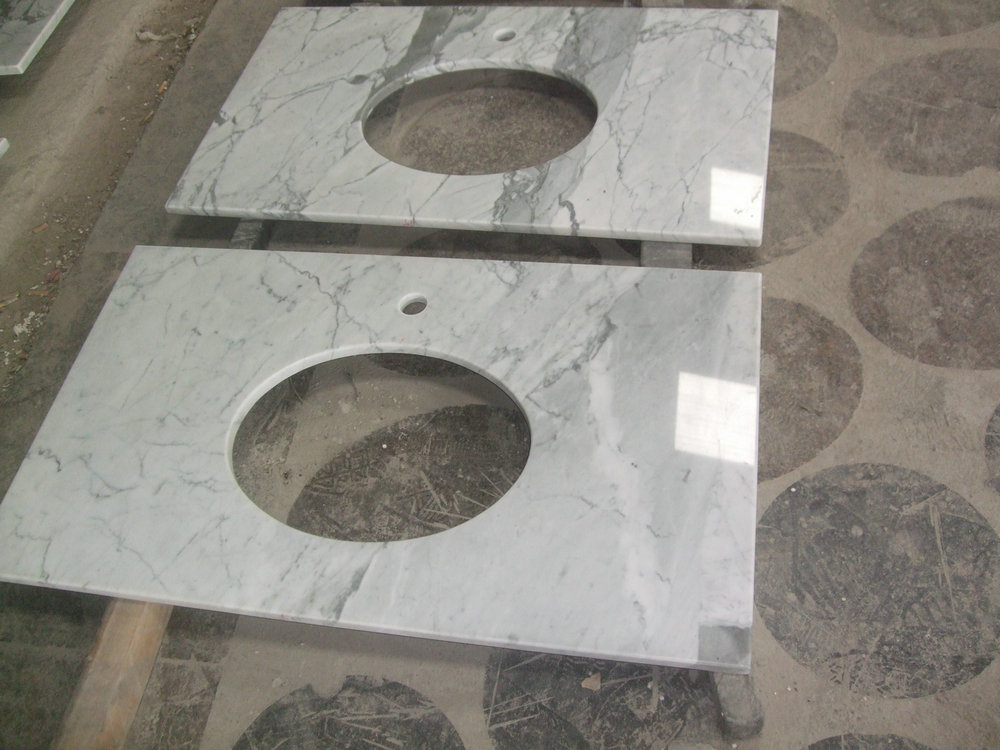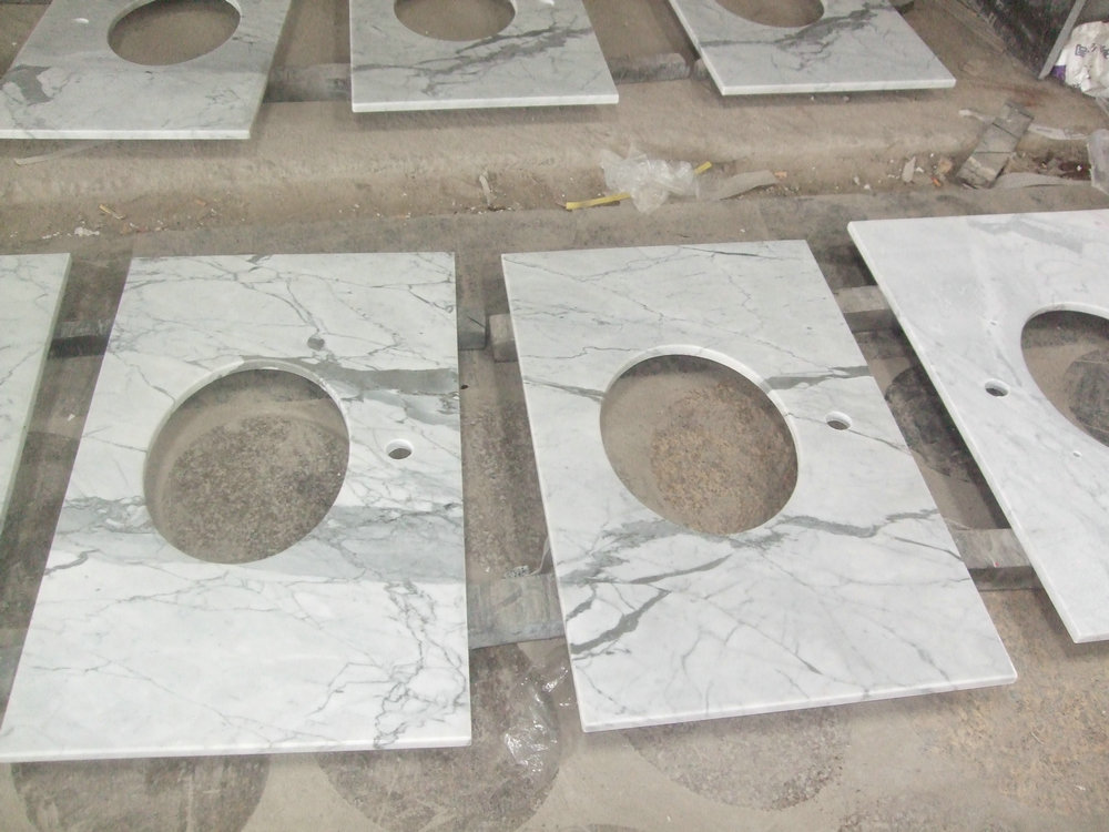 Snow White Marble Vanity Top is the trend of luxury designs for five star hotels villas etc. The Statuary selection has a brighter semi-translucent white background color with a distinctive and dramatic veining pattern for white marble countertops bathroom. This white marble countertop also brings much luxury concept to your house.