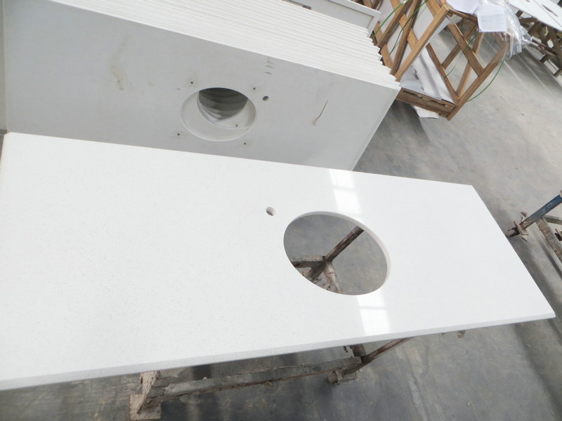 Stellar Snow Quartz Vanity Top is easy to clean and care. This bathroom countertops quartz is nonporous which has very hard surface resistant to stains scratches moderate heat and most household chemicals.And the cheap quartz countertops takes you less cost for remolding.