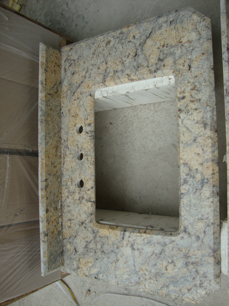 Sunny Flower Granite Vanity Top is quarried in Brazil and is loved for its characteristic colors and special patterns. The mix of gray, yellow and beige colors complements the white tones. Looking for custom size vanity top and granite bathroom sink tops, contact Newstar freely.