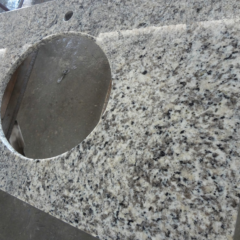 Tiger Skin White Granite Vanity Top is predominently white with black striation pattern that is suitable for any vanity bathroom projects. The beauty of white granite for double vanity bathroom lies in it's striations, flecks and variations.