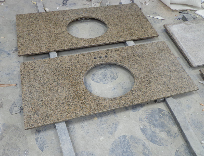 Tropic Brown Granite Vanity Top is a homogeneous granite composed mainly of intense brown crystals and a smaller amount of black biotite crystals. The combination of dark brown and black for double sink granite vanity top create a uniform color with a rich looking if you are planing to put this granite countertops for bathroom vanity.