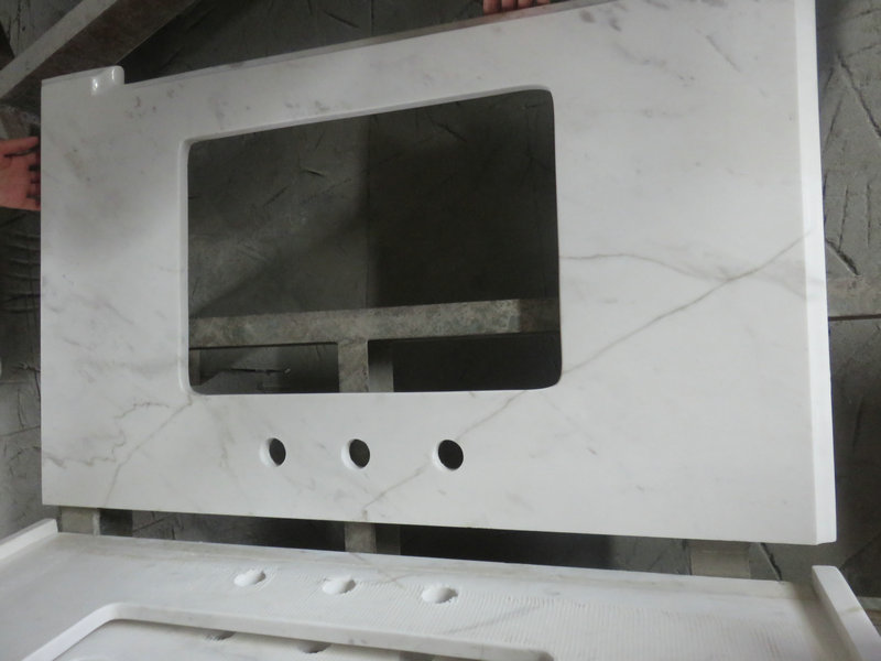 Volakas Marble Vanity Top is considered by some people as an exceptional and best option as a white marble counter for bathroom. Bathroom Vanity With Marble Top Volakas white marble with thick ribbons of silver and pewter flow through the alabaster white of our Grecian Volakas marble.