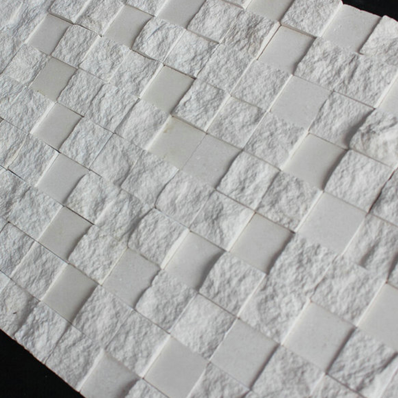 White Stone limestone mosaic tiles, 3d wall tiles, Home natural split design, Kitchen/Fireplace/TV/Shower background mesh decor tiles. This very nice design and good selling, we can use any other limestone you want to produce the same design.