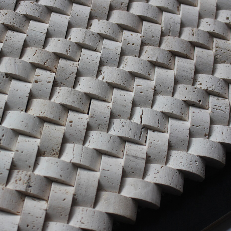 White 3d travertine mosaic tiles in wave shape, three-dimensional mosaic tile. Each natural stone is unique, and some display more variations from piece to piece. So Color and Veining Variations are normal for natural stone products.