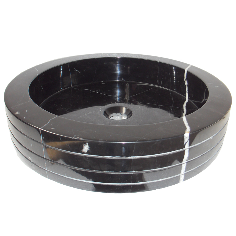 " The round marble vessel sink in black will help you add the look of natural stone to your bathroom. A marble sink top installs quickly onto any vanity, whether or not the sink bowl is already in place. Contact us for more details about it."