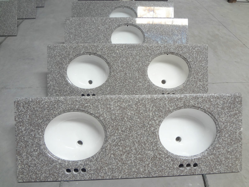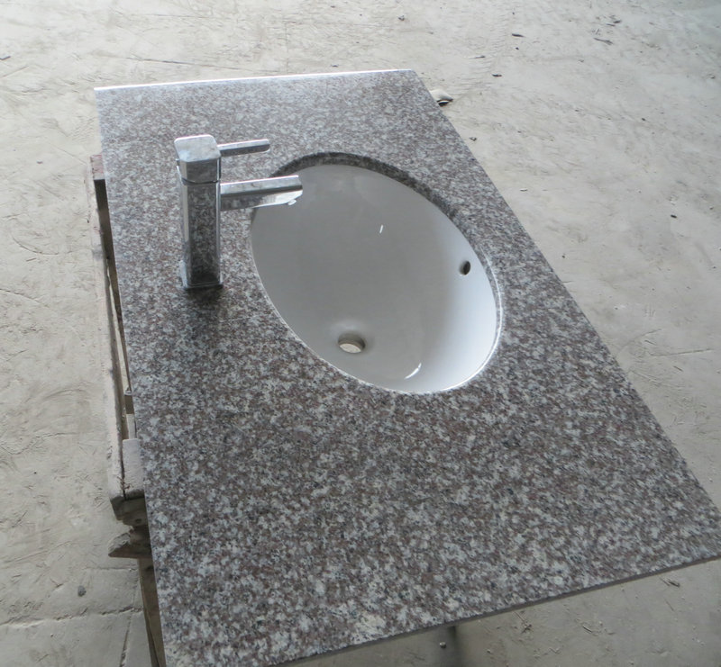 Bainbrook Brown Granite Vanity Top With Sink is a popular pink stone with hints of blacks and gray that blends well through out the slab.It complements the white cabinets and creates an interesting yet natural feel to the room. When combined with dark bathroom cabinets you would expect the contrast to be quite stark. But this is not the case and it flows beautifully.