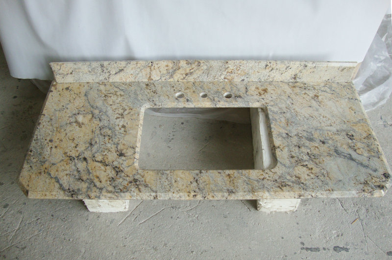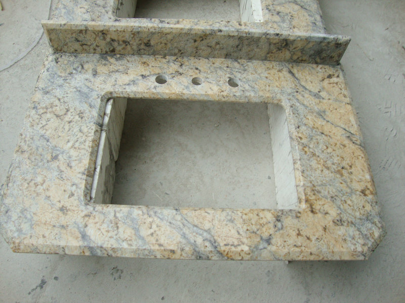 Sunny Flower Granite Vanity Top is a soft little addition to a stark white place when this bathroom vanities granite countertops are combined with white cabinets. The mix of gray yellow and beige colors complements the white tones. Looking for beset granite prices contact Newstar freely.
